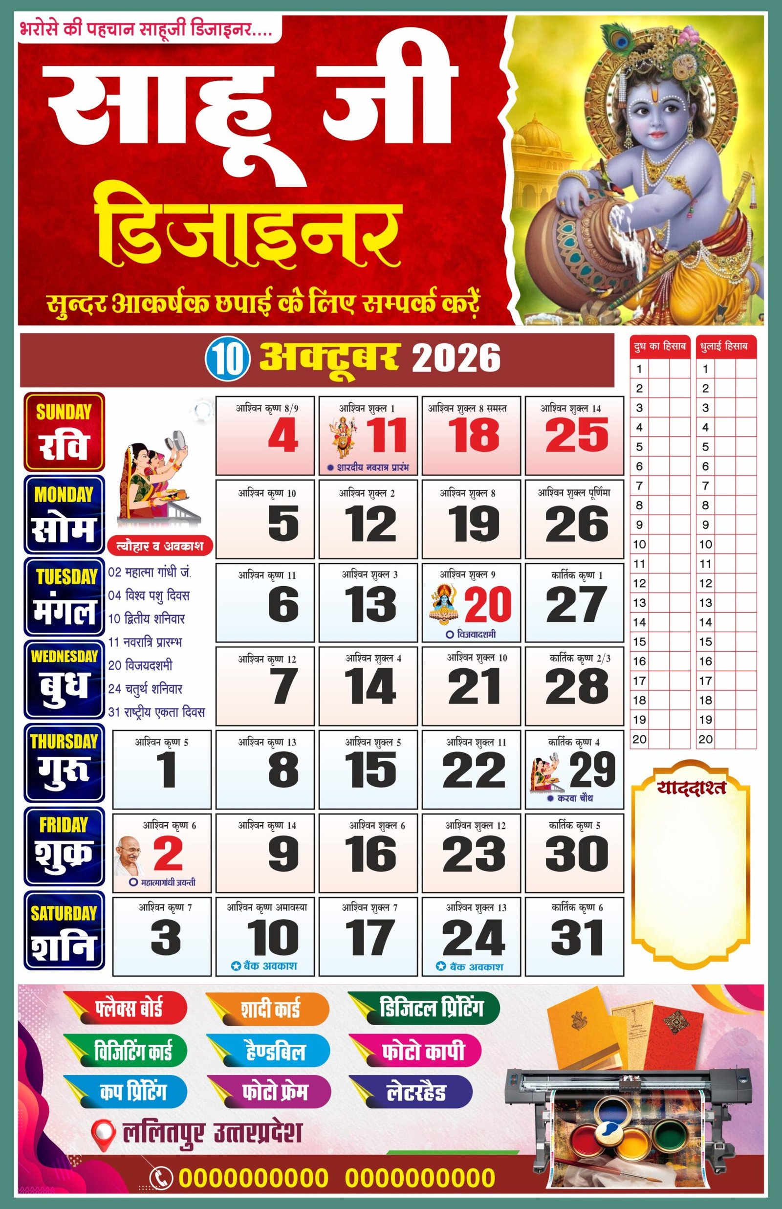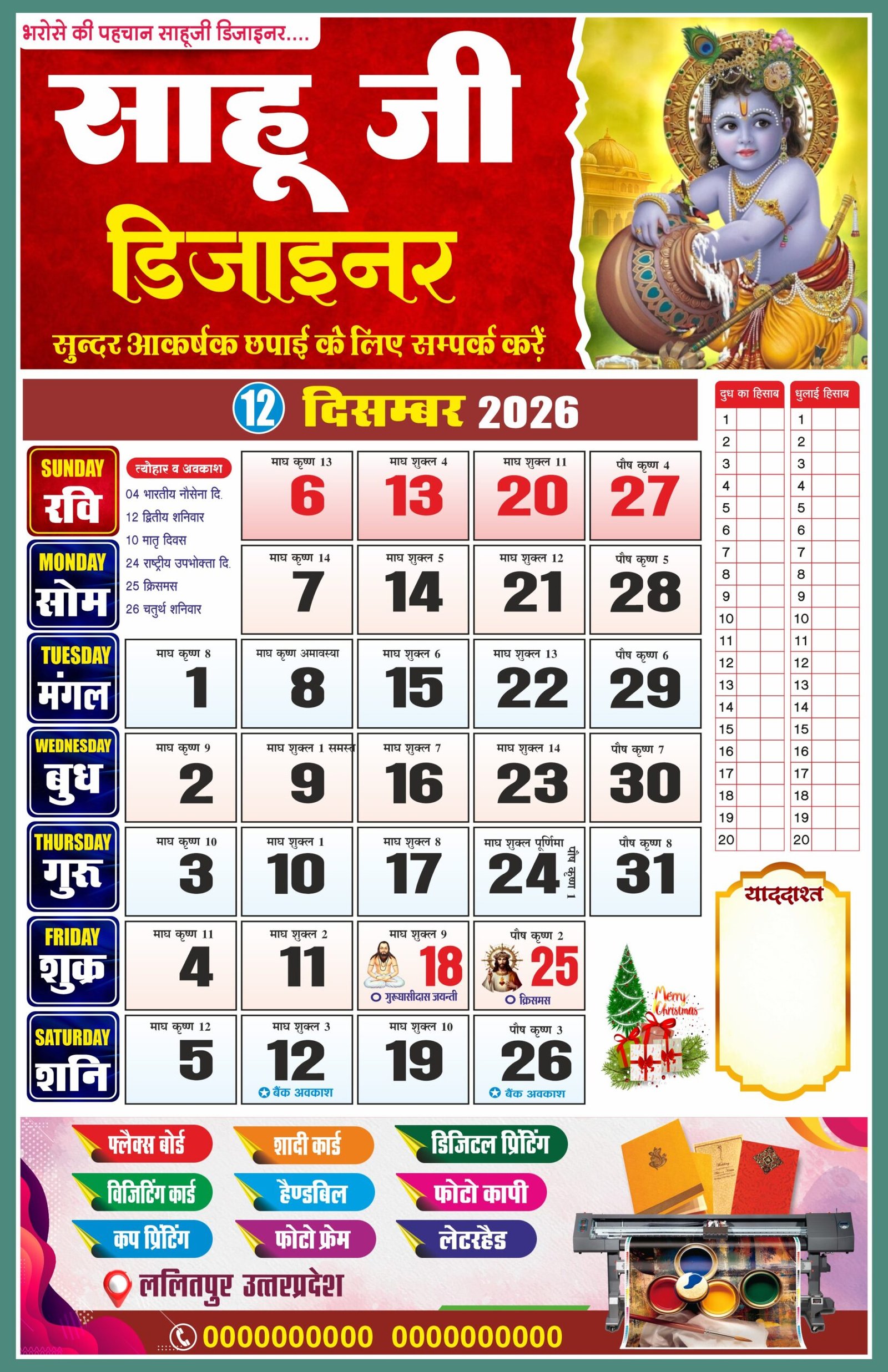 2026 Hindi Panchang Calendar 12 Month Design CDR File