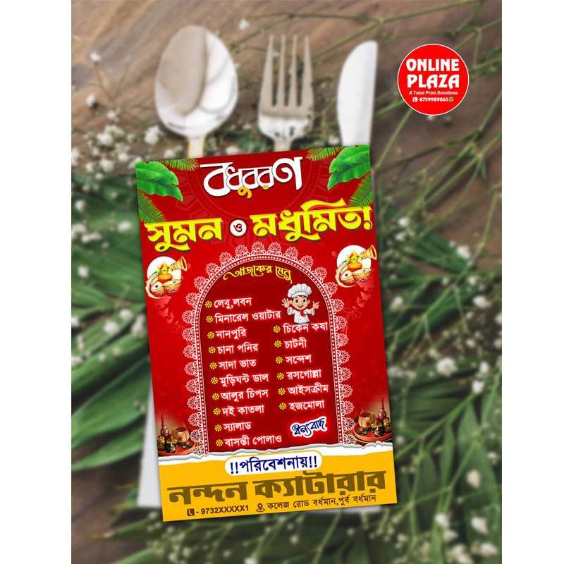Bengali Wedding Hand Menu Card PSD_ON
