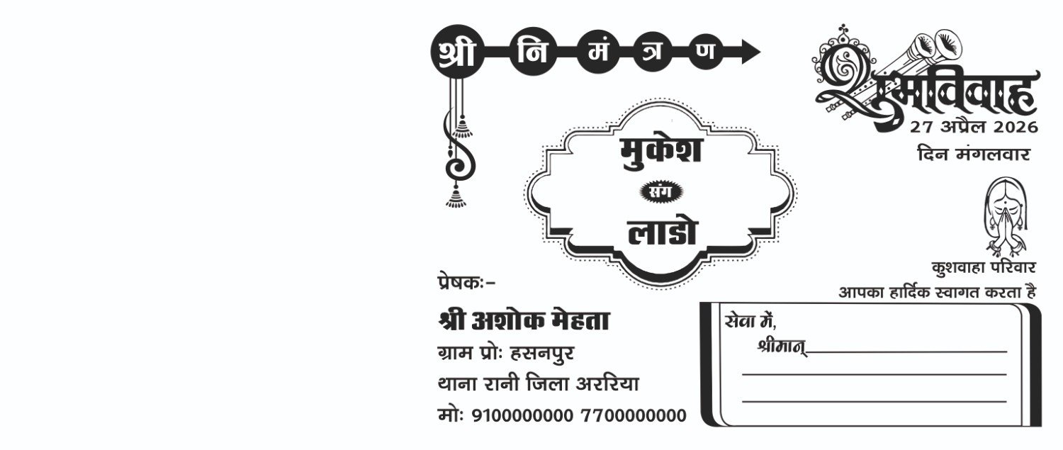 •Fancy hindu wedding card front and back printing black and white metter design cdr file