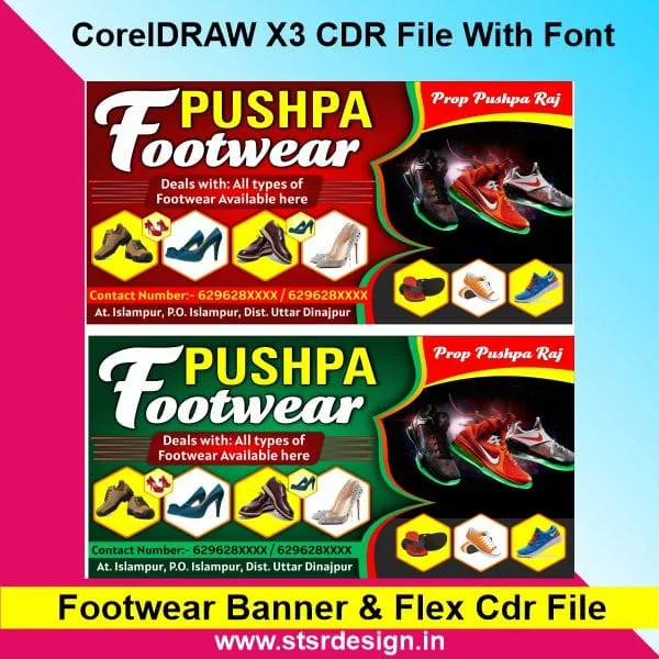 Footwear Banner & Flex Cdr File is an easy-to-use, Corel Draw file that gives you the clean and most attractive design. This is a Readymade Corel Draw file.