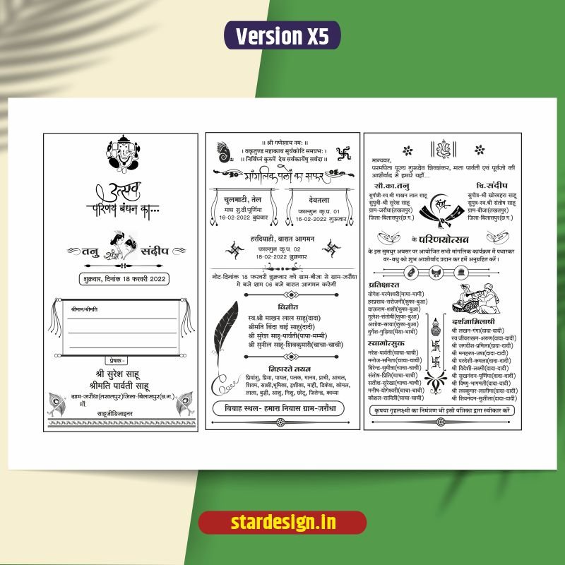 Hindu Wedding card Black & White cdr file