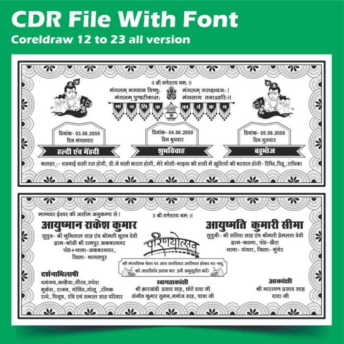 Whether you’re a professional designer or someone looking for a ready-to-edit solution, this CDR file is adaptable for any level of expertise. Simply download, customize and print to create invitations that will be cherished forever. Don’t miss the chance to make your wedding announcement stand out with this beautiful and practical design.