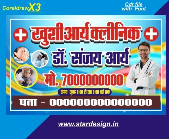 Hospital clinic poster banner design cdr file with font