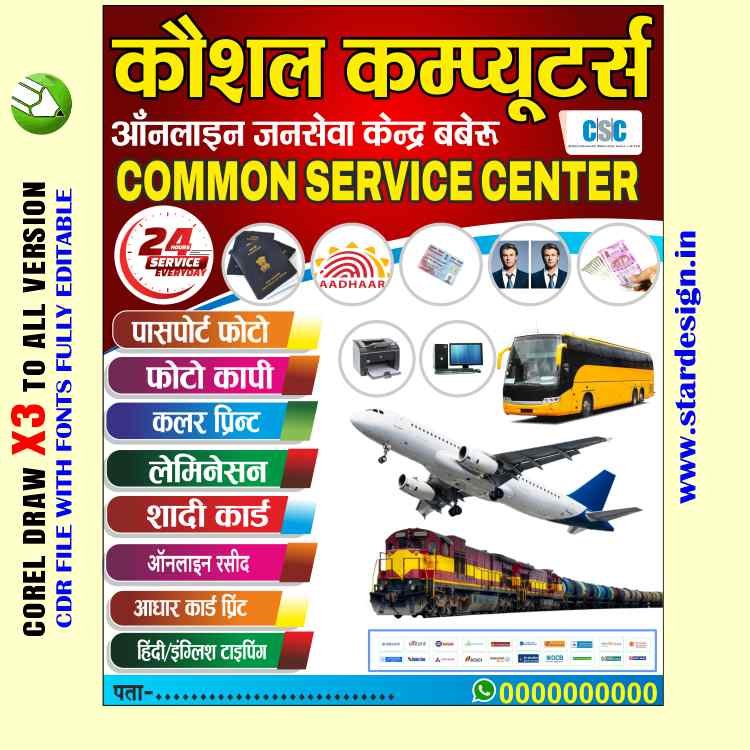Letest New CSC Janseva Kendra Computer Shop Flex banner Design cdr file with font