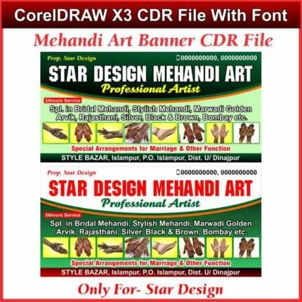 Mehandi Art Visiting Card CDR Fileis an easy-to-use, Corel Draw file that gives you the clean and most attractive design. This is a Readymade Corel Draw file.
