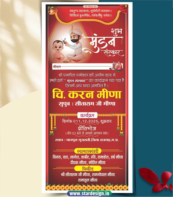 Our Mundan Sanskar invitation card design stands out as one of India’s top CDR files thanks to its user-friendly format and versatility. Whether you’re looking to send out printed cards or digital invites, this design adapts beautifully to both formats. Plus, with easy instructions attached, even those with minimal design experience can create stunning invitations in no time!