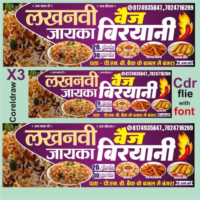 New desing vag biryani & Fast Food Shop Flex Banner 2025 Cdr file with font