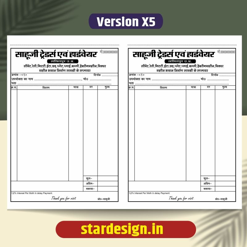 Sahuji traders & hardware Billbook
