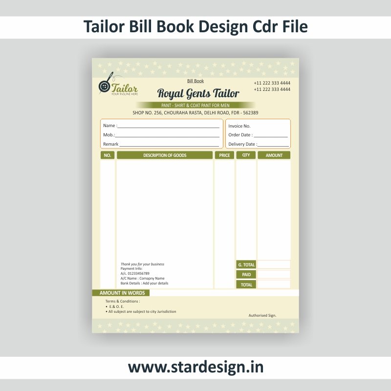 Tailor Bill Book Design Cdr File