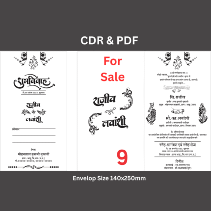 Fancy Hindu Wedding Card Hindi Design black and White -9 3in1